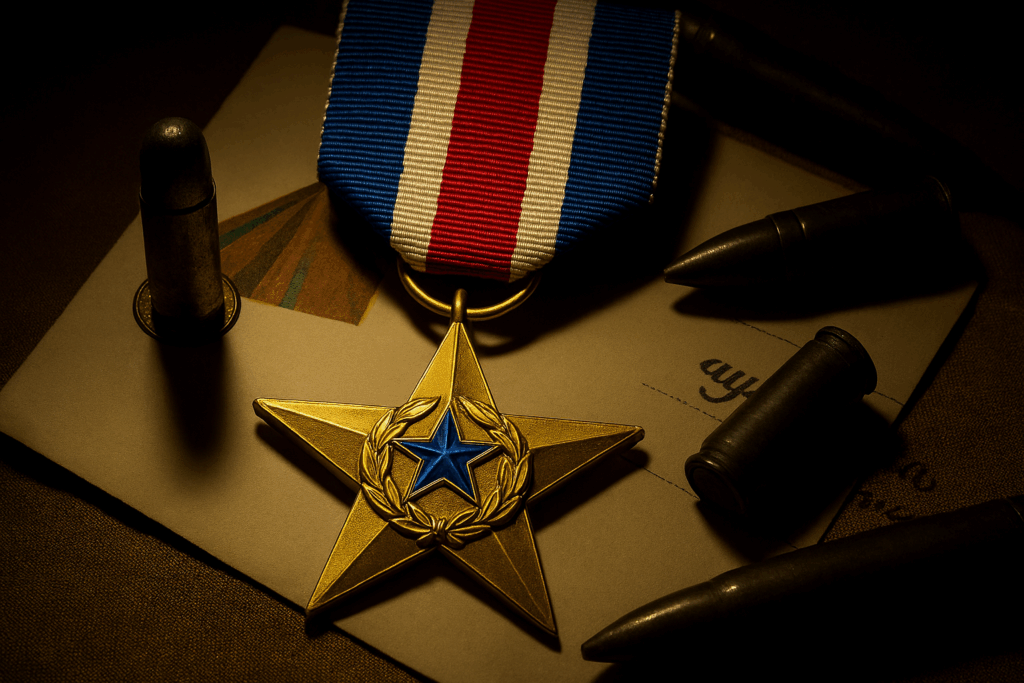 Thomas Ray hadn’t touched the box since it arrived. It lived under his bed, where dust settled without judgment. He didn’t talk about the war, not in church, not over coffee. Not when his wife asked why he woke up gasping. The medal came three years late. “Your Silver Star for actions near the Falaise pocket,” the letter said. Typed. Detached. Recognition wrapped in a velvet lie. When the box first arrived, Thomas didn’t open it. He placed it under the bed like a buried confession. Velvet shouldn’t cover Silver. Velvet was too soft for what it meant. Some nights, he lay awake with the box pressing up through the mattress like a memory trying to surface.
